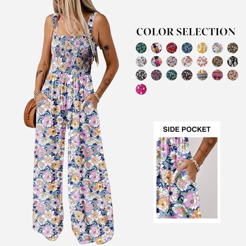Breezy Wide-Leg Jumpsuit with Square Neckline & Bold Prints